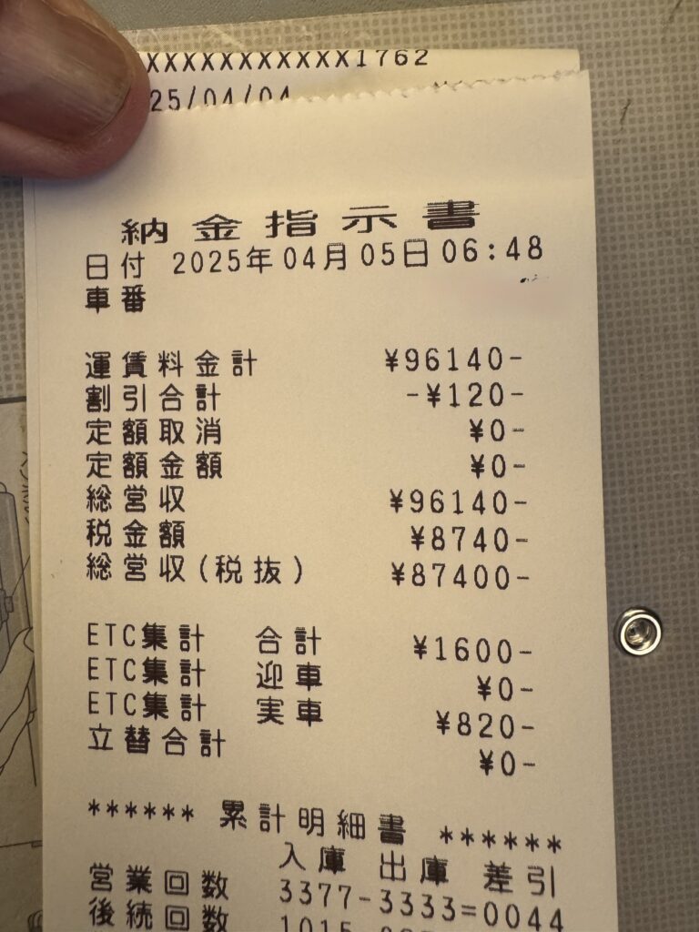 走行距離291キロ/営業キロ179キロ /実車率61.5%