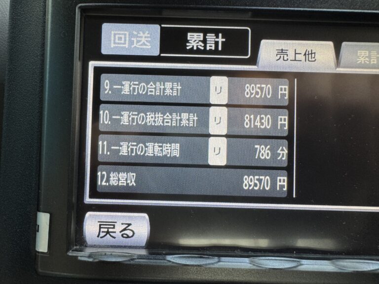走行距離327キロ/営業キロ173キロ /実車率52.9%