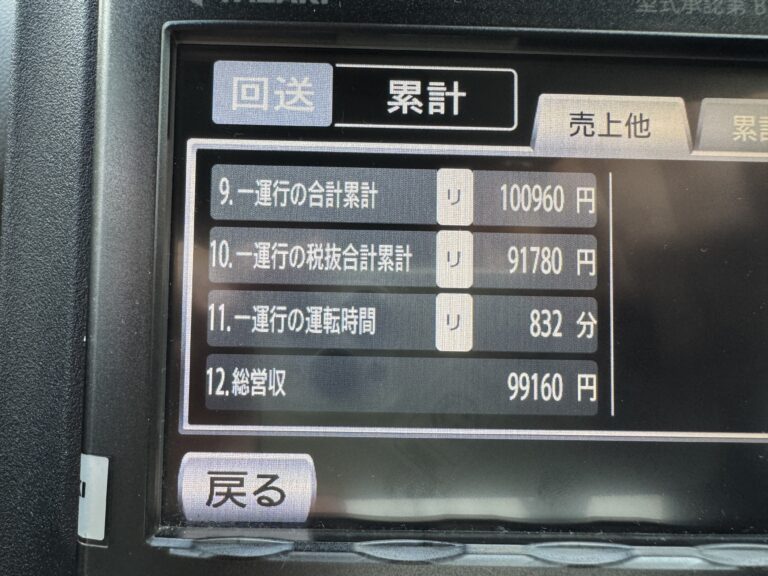 走行距離351キロ/営業キロ197キロ /実車率56.1%